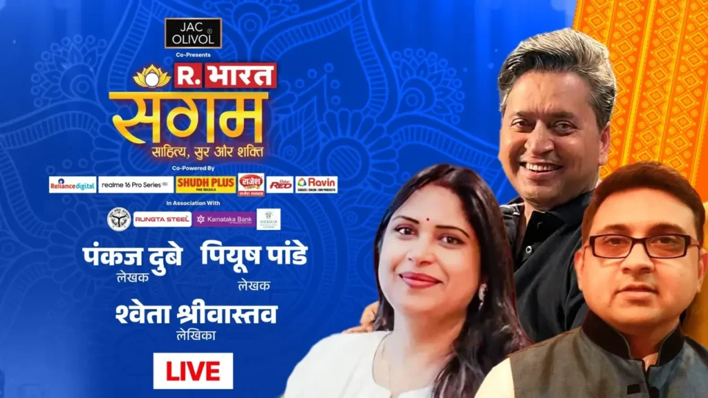 R. Bharat Sangam में पंकज दूबे, श्वेता श्रीवास्तव और पीयूष पांडेय | Image: Republic R. Bharat Sangam 2026: ‘रिपब्लिक भारत’ परिसर