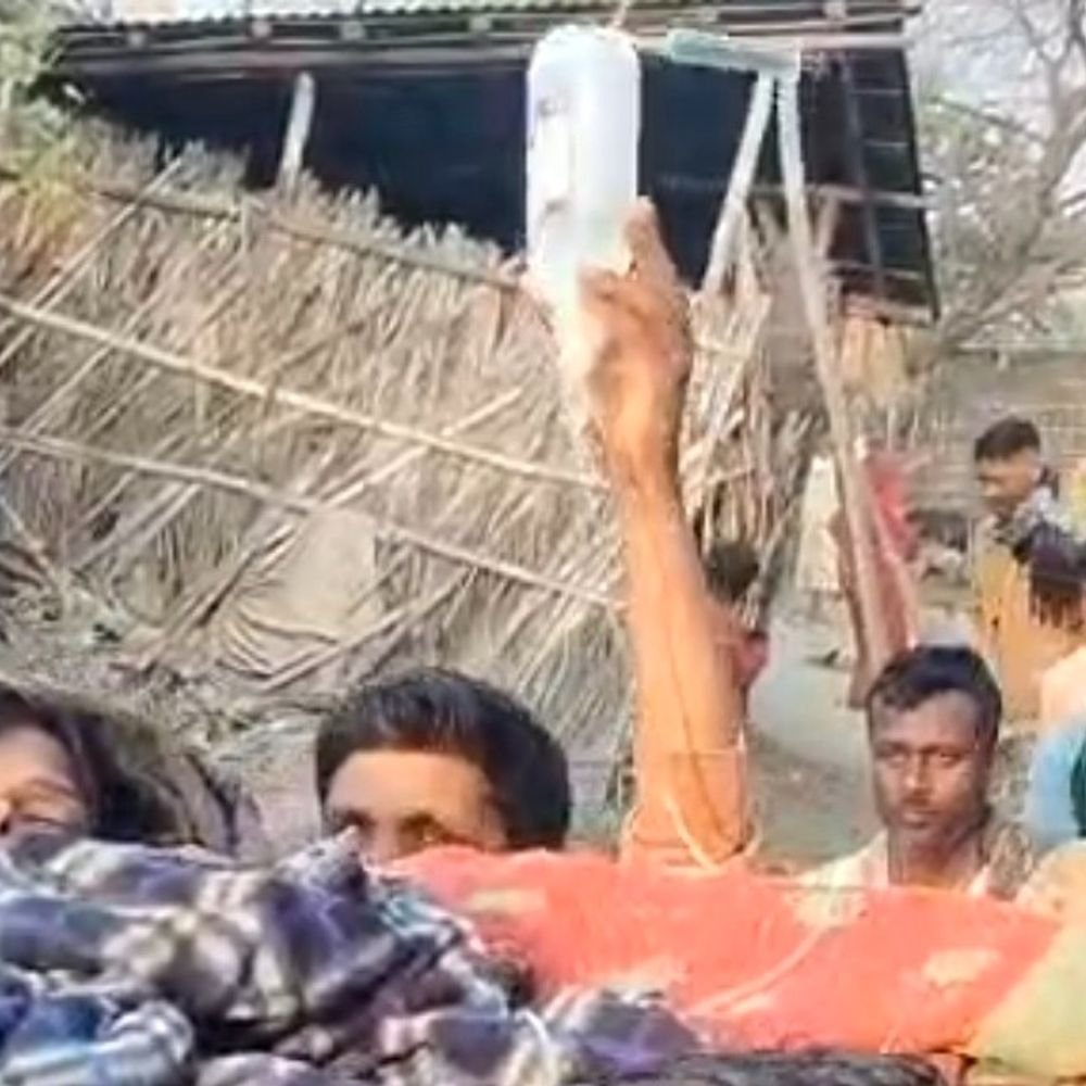 हाथ में स्लाइन और खाट पर मरीज भागलपुर के डीमहा पंचायत में सड़क की सुविधा नहीं लोगों ने टांगकर पहुंचाया अस्पताल…