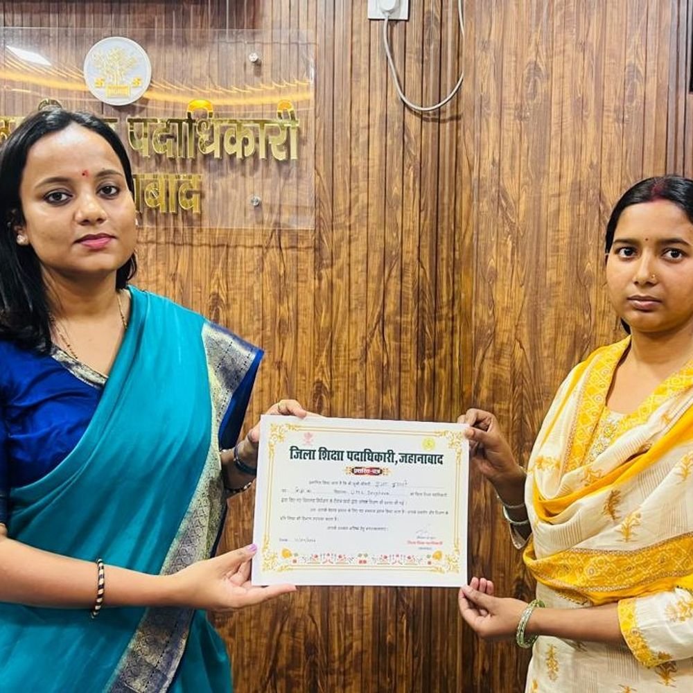 जहानाबाद में जिला शिक्षा पदाधिकारी (डीईओ) सरस्वती कुमारी ने दो शिक्षकों को उनके उत्कृष्ट शिक्षण कार्य के लिए सम्मानित किया।
