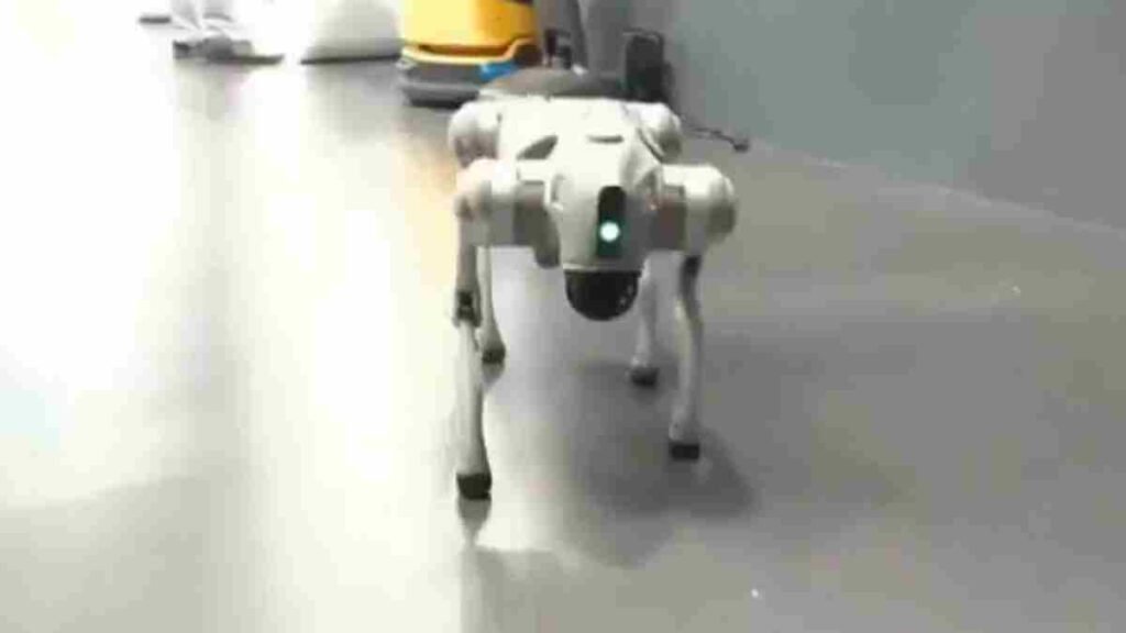 देश की राजधानी में आयोजित AI इम्पैक्ट समिट के दौरान प्रदर्शित एक रोबोटिक डॉग को लेकर गलगोटिया यूनिवर्सिटी (Galgotias University)