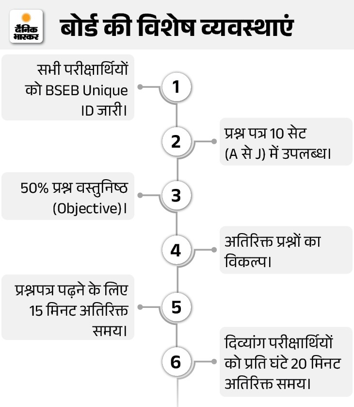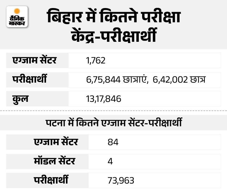 जिले भर में कुल 64 परीक्षा केंद्र बनाए गए हैं, जिनमें बेतिया अनुमंडल में 41, नरकटियागंज में 12 और बगहा में 11 केंद्र शामिल हैं। यह परीक्षा 2 फरवरी से 13 फरवरी तक दो पालियों में आयोजित की जा रही है। इस वर्ष कुल 43,104 परीक्षार्थी शामिल हो रहे हैं, जिनमें छात्राओं की संख्या छात्रों से अधिक है।